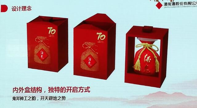新品重新设计了外盒包装,通体红色,经过设计的“70”字体醒目突出,采用顶端礼盒木楔收口。奇特的开启方式,吻合鬼斧神工之韵。内盒前后展示效果有开天辟地之意。“开坛饮酒、举杯同庆的一刻,伴随着香醇的馥郁美酒,还有着吉祥美好的浓浓祝福。”现场解读产品上市策略的酒鬼酒销售管理中心总经理邹斐告诉《中国酒业》记者,每瓶70周年纪念酒均被斌予独立编号,并附精美的收藏证书。《中国酒业》记者现场了解到,该产品因具备收藏功能,市场定价超1200元。