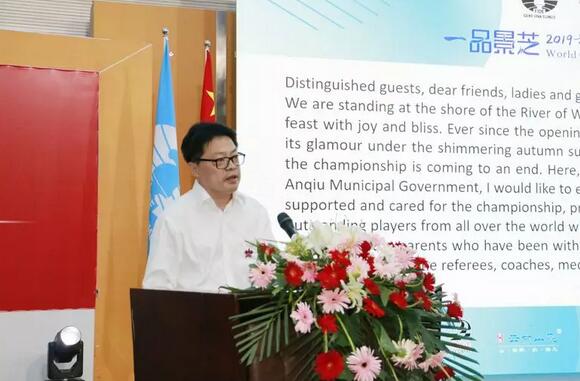汶水迎嘉宾,渠丘共欢腾。金秋的安丘,因世界国际象棋青少年锦标赛而备受瞩目。颁奖仪式上,安丘市委书记李新阁先生代表安丘市委、市政府,衷心感谢所有关心支持本届赛事的各位领导,热烈祝贺取得优异成绩的各国代表队和优秀棋手,诚挚问候一直陪伴在孩子身旁的家长们,为赛事成功举办付出辛勤汗水的裁判员、教练员、媒体朋友和工作人员。