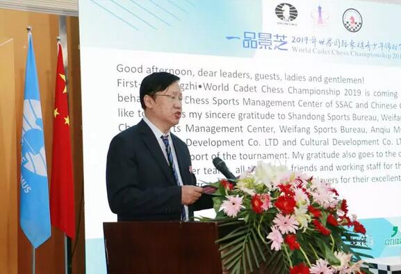叶江川先生在讲话中特别提到,2019年世界国际象棋青少年锦标赛比赛期间,组委会举办了文化博览会,向世界展示了潍坊当地的特色,弘扬了中国传统文化,促进了世界各国的友谊交流和不同国家地区的文化融合,赢得了国际友人的一片赞誉,为国增光,也为国际象棋的发展做出了应有的贡献。