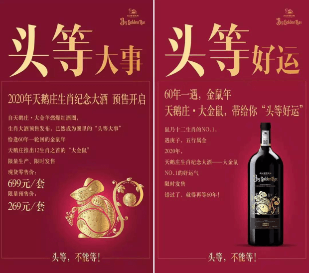 因此,10月23日,天鹅庄2020生肖纪念大酒天鹅庄·大金鼠中国首品会在天津举行。之所以将2020生肖大酒命名为“大金鼠·头等好运”,并在包装上增加“No.1”这样的icon,寓意新的一年有着No.1的好运气和No.1的祝福。目前,吊足市场两个多月胃口的“大金鼠”已开放预订。