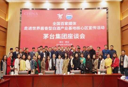 图说:全国百家媒体代表在茅台集团座谈会后合影留念