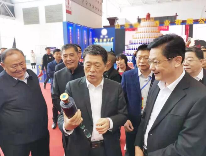 开幕式后,临沂市委书记王玉君、山东省糖酒副食品商业协会会长薛剑锐、山东新星集团董事局主席魏心东等领导,在景芝酒业总经理来安贵陪同下到景芝展厅参观,鉴赏景芝美酒。
