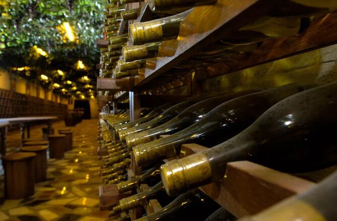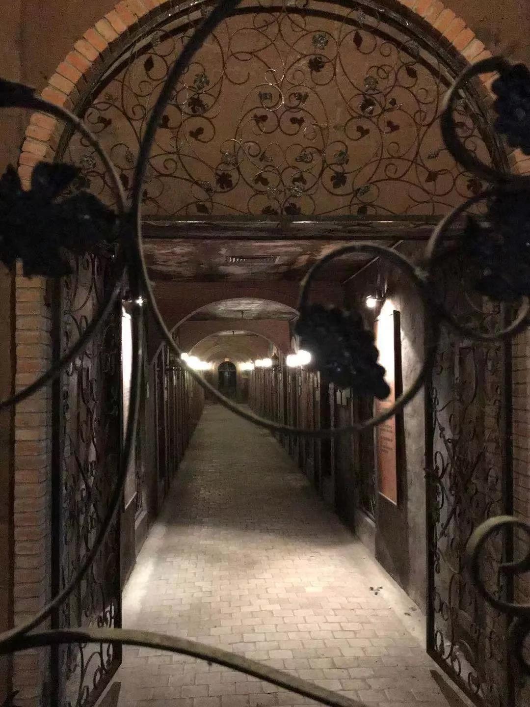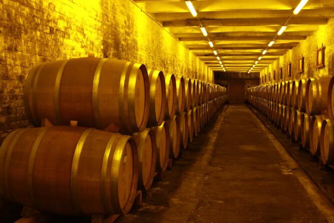 这里的温度自然恒定在14摄氏度,湿度较大。硬冷的水泥墙透着一些湿气,很难想象醇美的葡萄酒就出自这粗糙触感的背后。
