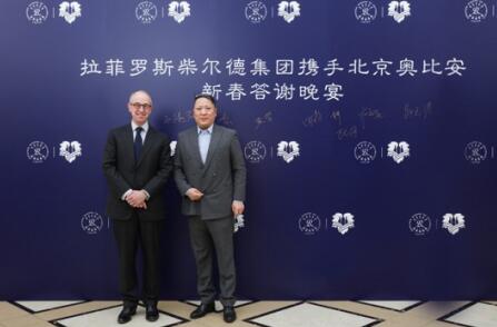 (拉菲罗斯柴尔德集团总裁让-纪尧姆·普拉Jean-Guillaume Prats先生与北京奥比安贸易有限公司总经理赵川先生)