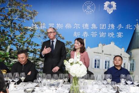 随后,拉菲罗斯柴尔德集团总裁让-纪尧姆·普拉(Jean-Guillaume Prats)先生受北京奥比安总经理赵川先生的邀请与在场来宾进行了分享:“今天非常高兴能够与这么多的中国葡萄酒爱好者共进晚宴,一起分享拉菲集团及旗下葡萄酒的故事。拉菲集团自1868年开始酿造精品葡萄酒,至今已有150余年,不论在历史的长河中历经多少困难,拉菲集团始终坚持葡萄酒酿造事业,并致力于将葡萄酒佳酿带给大家。拉菲集团也很高兴与北京奥比安携手,相信在共同的信念下,未来会有更好的合作。”