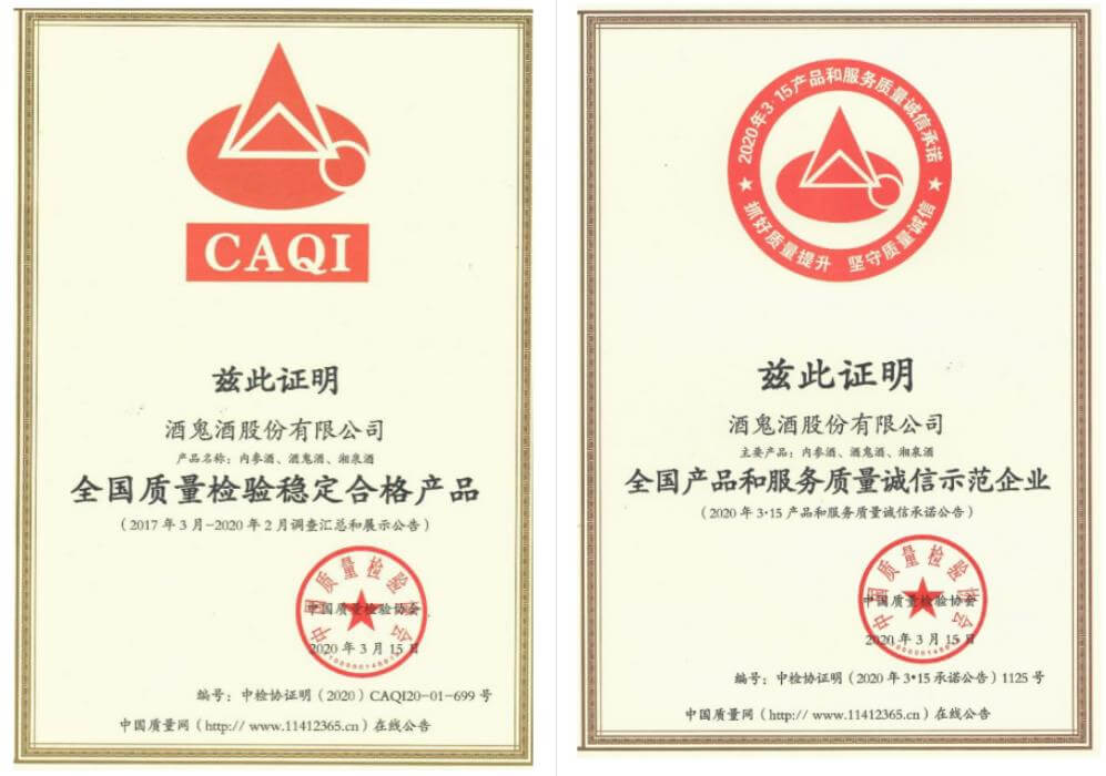 消费者为王的时代,企业更要拥有质量口碑。作为闻名全国的白酒品牌,品质当先始终是湘酒“名片”酒鬼酒的重中之重。日前,凭借着优质的原材料、稳定的产品质量及完善的售后服务,酒鬼酒公司被中国质量检验协会评为《全国产品和服务质量诚信示范企业》和《全国质量检验稳定合格产品》。两项殊荣的取得,进一步彰显了新时代酒鬼酒公司清晰明确的严格质量战略。