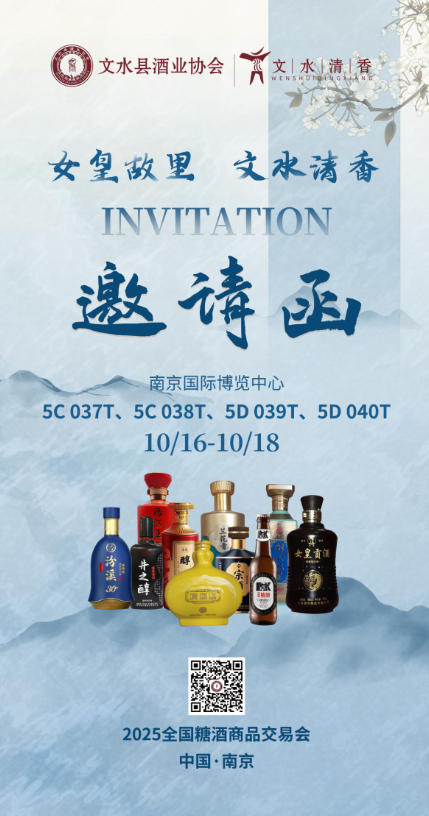 10月16日至18日,“文水清香”将在南京国际博览中心5号馆(展位:5C037T - 5D040T)璀璨亮相。届时,您将有机会品尝到来自汾河岸边的清香美酒,感受那纯净、醇厚的独特风味。
