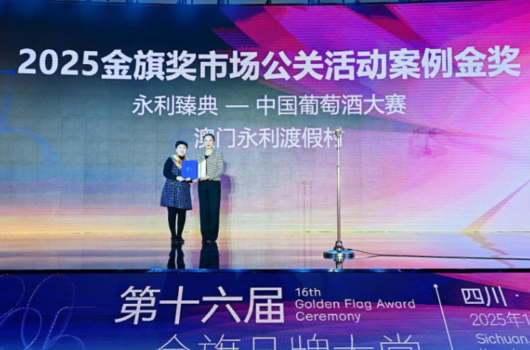 金旗奖自2010年创办,是中国品牌公关传播领域最具权威影响力的奖项之一,聚焦品牌的长期价值创造与社会影响力。“永利臻典——中国葡萄酒大赛”凭借对品牌内涵的深度挖掘与精准的市场传播策略,在众多参赛案例中脱颖而出,一举夺得“市场公关活动案例金奖”。同时,永利澳门有限公司综合度假村市场策略营销总裁邹文瑜(Zoe Zou)更斩获“金旗年度品牌人物奖”,该奖项全国仅六人获选,旨在表彰她在品牌传播策略与团队领导力上的卓越成就。
